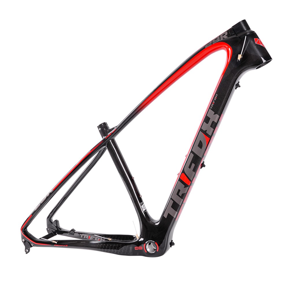 TRIFOX MFM200 29er Carbon Hardtail MTB Frame is the perfect choice for those looking for a lightweight and durable frame. This frame features an internal cable routing design, enabling quick and easy assembly. It also comes with a quick-release hanger, allowing you to switch between different wheel sizes quickly and easily. The frame is made from high-quality carbon fiber, making it strong yet lightweight.its carefully crafted geometry accommodates 29er*2.1" wheels, with its sleek design, this frame will give your bike an edge on the trails. Whether you're looking for a budget carbon fiber mountain bike or just want to upgrade your current ride, the TRIFOX MFM200 29er Carbon Hardtail MTB Frame is sure to take your cycling experience to the next level.