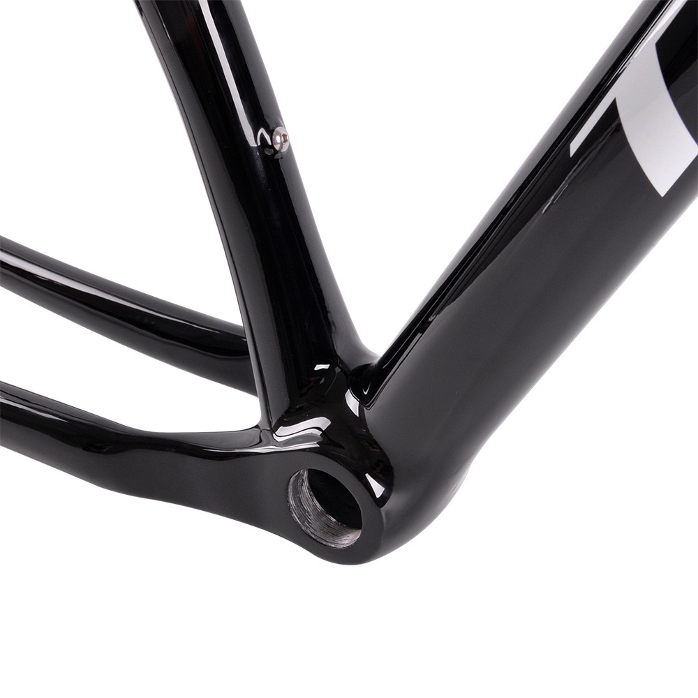 El cuadro ultraligero 29er Carbon Hardtail MTB SDY20 es un cuadro de bicicleta liviano y orientado al rendimiento diseñado para aumentar su confianza en cualquier terreno. Este cuadro está hecho de fibra de carbono de alta calidad y cuenta con enrutamiento interno de cables y compatibilidad con Boost Ø12*148 mm para aumentar la rigidez y mejorar la tracción en varios tipos de terreno. El marco pesa solo 980 g (S-15'') y 1050 g (M-17''), lo que lo convierte en uno de los marcos más livianos disponibles en su clase. Además, es posible que no sea adecuado para estilos de conducción más agresivos, como descenso o freeride, debido a su construcción liviana. Ofrece una excelente relación calidad-precio y brinda a los ciclistas muchas opciones de personalización gracias a su compatibilidad con la mayoría de las horquillas y neumáticos. Y la geometría del cuadro se ha optimizado para obtener el máximo rendimiento al mismo tiempo que proporciona una conducción cómoda.