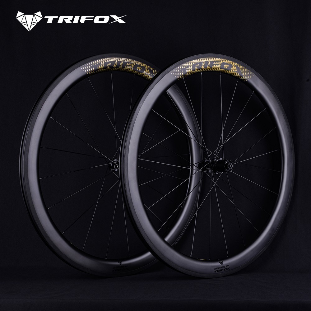 El juego de ruedas para bicicleta de carretera Trifox WT17, fabricado con fibra de carbono ultraligera al 100% y acabado mate UD, ofrece una resistencia y rendimiento excepcionales. Con un ancho exterior de 25 mm y un ancho interior de 18 mm, es compatible con neumáticos con cubierta 700 x 25C. El juego de ruedas cuenta con radios y pezones Pillar de tiro recto, con 20 orificios en la rueda delantera y 24 orificios en la rueda trasera. Con bujes de aleación de aluminio Trifox T17, diseño de liberación rápida, con espacio de buje delantero de QR x 100 mm y espacio de buje trasero de QR x 130 mm. Es compatible con frenos de llanta y admite Shimano 8/9/10/11S o SRAM XDR 12S. Los rodamientos de buje de contacto LLU de alta calidad proporcionan un sellado fuerte, con dos rodamientos en el buje delantero y cuatro rodamientos en el buje trasero. El buje de liberación rápida permite un fácil desmontaje e instalación sin necesidad de herramientas, lo que garantiza un mantenimiento y servicio convenientes. Las ruedas de carbono WT17 están disponibles en opciones de profundidad de 45 mm, 50 mm y 60 mm para adaptarse a diversas preferencias y condiciones de conducción.