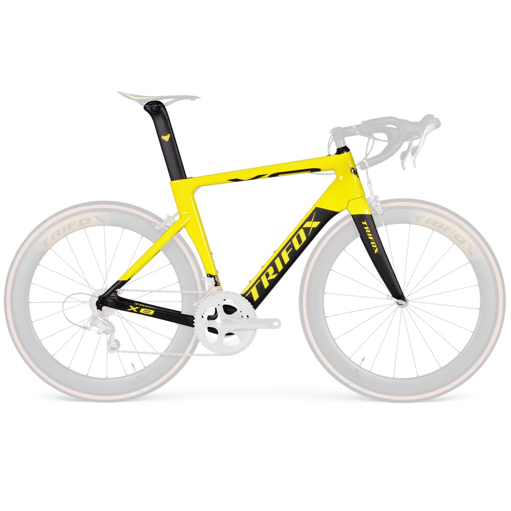El cuadro de freno en V para bicicleta de carretera de carbono de TRIFOX X8QR es un cuadro de bicicleta de carretera elegante y de alto rendimiento fabricado con fibra de carbono T800 ligera y duradera. El diseño del cuadro de ciclismo AERO mejora la aerodinámica para mejorar la velocidad y el rendimiento. Cuenta con un estilo de puntera de liberación rápida para una mejor rigidez, estabilidad y manejo, y ofrece compatibilidad con DI2 y grupos mecánicos. Con enrutamiento interno de cables para una apariencia elegante y protección contra la suciedad, el cuadro de freno de llanta X8QR está disponible en varios tamaños (48/51/54/56 cm) para garantizar un ajuste cómodo para varios ciclistas. Este cuadro atractivo y bien diseñado es una excelente opción para construir una bicicleta de carretera de alto rendimiento.
