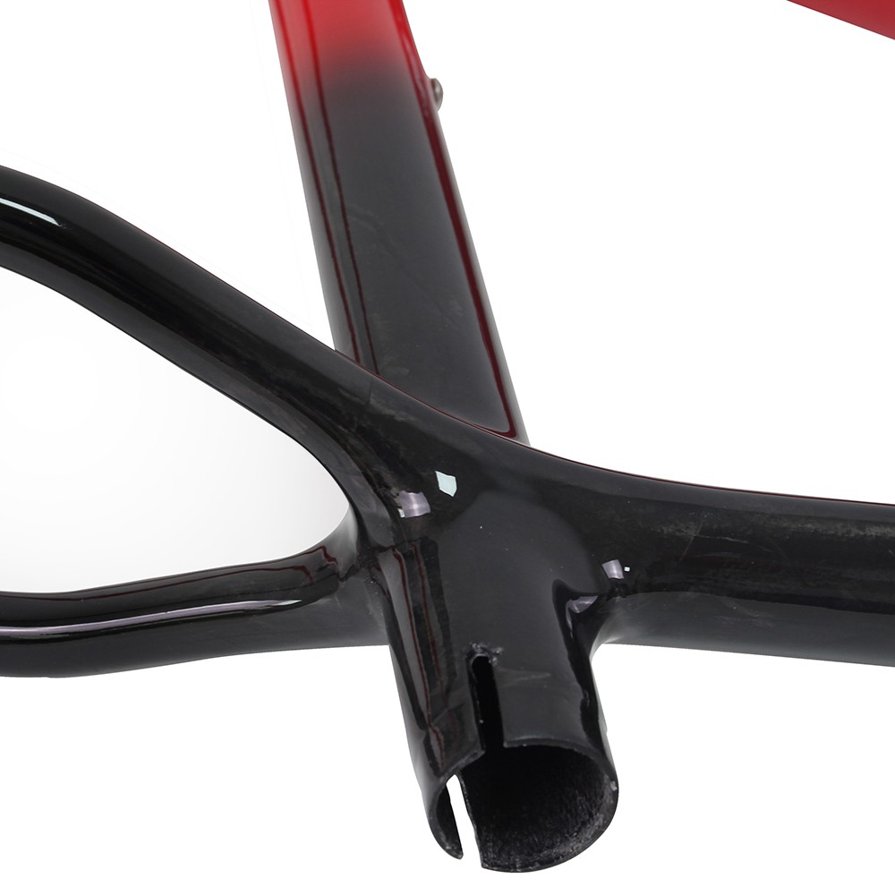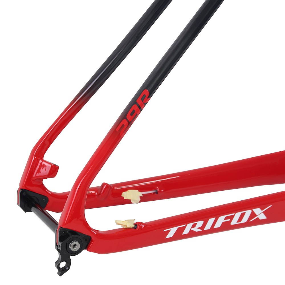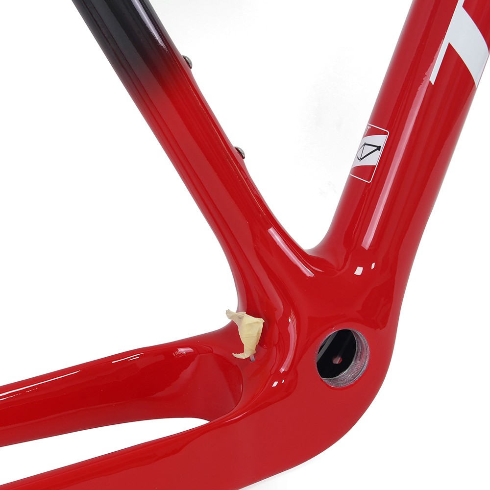 29er Full Internal Cable Routing bicycle Frame SDY21 feature T800 carbon fiber, offering ultra-lightweight performance and a Red gradient, full glossy painting.